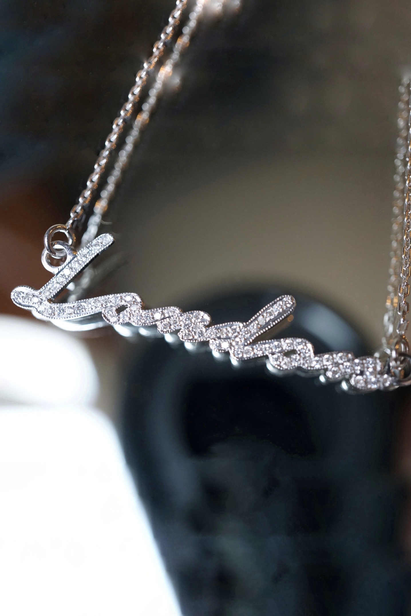 •ออเดอร์เป็นชื่อหรือคำที่คุณต้องการ และฝังเพชร CZ ลงบนตัวหนังสือ